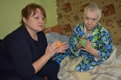 Заведующая отделением социальной реабилитации с получателями социальных услуг провела занятия с массажным мячиком. Комплекс упражнений с массажным мячиком способствует восстановлению и развитию координированных движений, мышечной силы, коррекции речевых нарушений, регулированию точности движений, регулированию точности движений и активизации внимания у пожилых людей. |